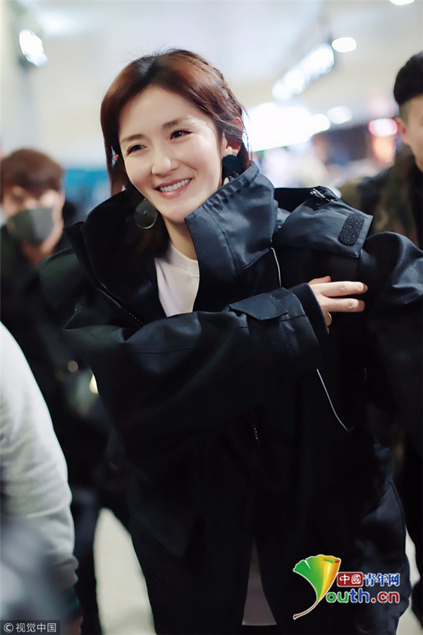 11月20日,湖南省長沙市,謝娜抵達長沙機場,一身黑衣酷感,遇到粉絲熱情揮手,她編著小辮露出甜笑,少女感爆棚!