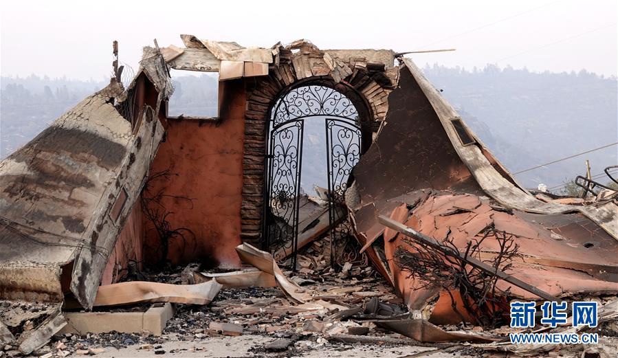 這是11月20日在美國加利福尼亞州比尤特縣天堂鎮(zhèn)拍攝的山火廢墟。
