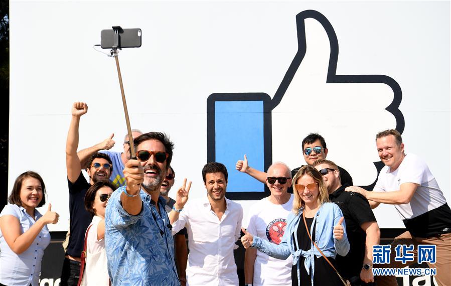 8月11日,在美國舊金山灣區(qū),參加“臉書節(jié)”的游客在臉書園區(qū)標志前合影。當日,舊金山灣區(qū)臉書園區(qū)舉行“臉書節(jié)”,人們在活動中欣賞文藝表演,品嘗美食,乘坐游樂設(shè)施等,活動收入將捐給慈善團體。新華社記者吳曉凌攝