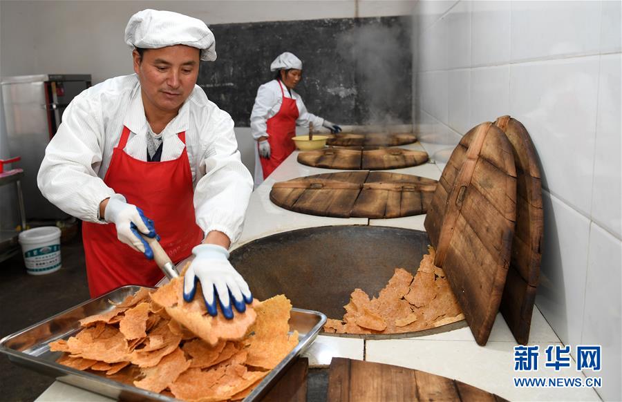 11月22日,汪明祥(左)和妻子姚新花在鍋巴廠里加工鍋巴。新華社記者劉軍喜攝