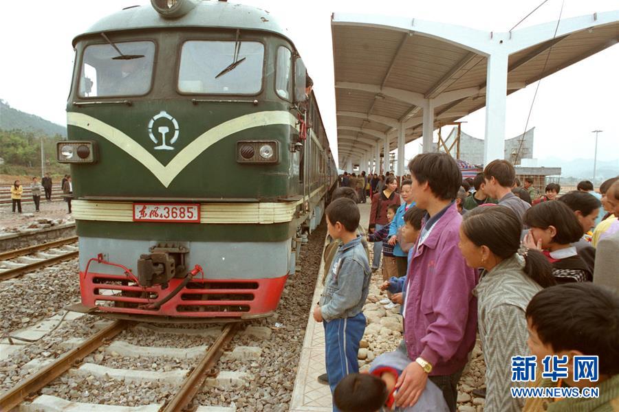 1998年12月6日,首列福州-南平-武夷山旅游客運(yùn)列車緩緩駛進(jìn)武夷山站。 新華社記者張國(guó)俊 攝