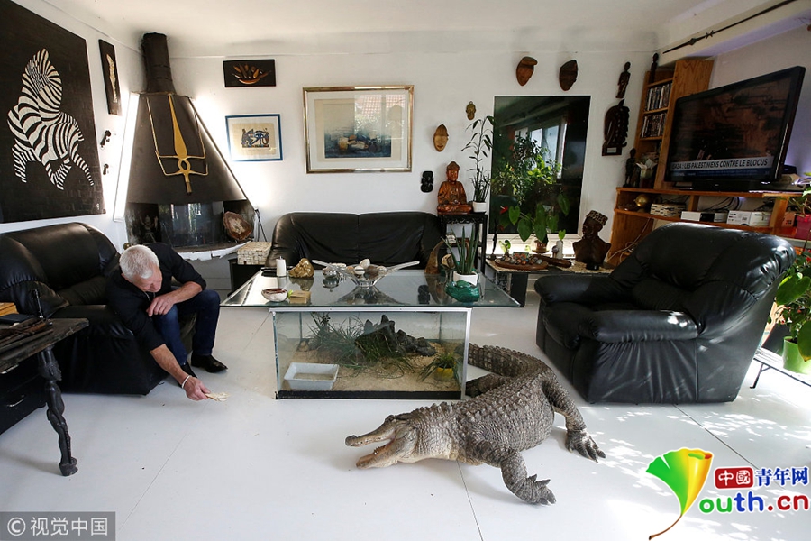 Philippe Gillet將短吻鱷從小養(yǎng)大,在家里允許它們肆意走動,就如同我們的家養(yǎng)貓貓狗狗一樣。