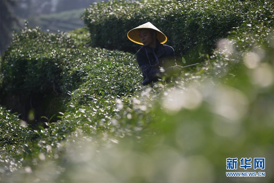 11月22日,在廣西柳州三江侗族自治縣八江鎮(zhèn)布央村,村民陸志榮在修剪茶樹。目前,當(dāng)?shù)夭鑸@進(jìn)入冬季管護(hù)期,茶農(nóng)修剪茶樹,為來年采春茶做準(zhǔn)備。新華社記者任正來攝