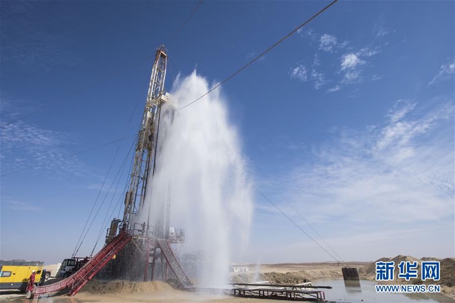 11月21日,在埃及明亞省,地下水從水管里噴涌而出。 2017年,中國中曼石油公司與阿聯(lián)酋海灣集團(tuán)簽訂合同,為該集團(tuán)在埃及沙漠中的大型農(nóng)業(yè)項(xiàng)目鉆探300口水井。根據(jù)合同,中曼石油將先期完成30口井的試鉆探,剩余水井將以每月7口的速度交付。目前有超過200名工人在鉆井現(xiàn)場作業(yè),大部分是埃及本地人。 新華社記者李碧念攝