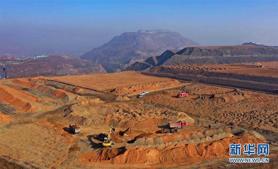 11月25日,工作人員在準(zhǔn)備復(fù)墾的遷安市馬蘭莊鎮(zhèn)紅石崖村北的廢棄尾礦庫施工(無人機(jī)拍攝)。新華社記者 楊世堯攝