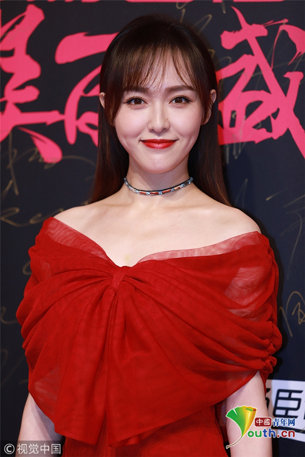 唐嫣紅色紗裙知性溫婉 胸前蝴蝶結(jié)點綴盡顯俏皮