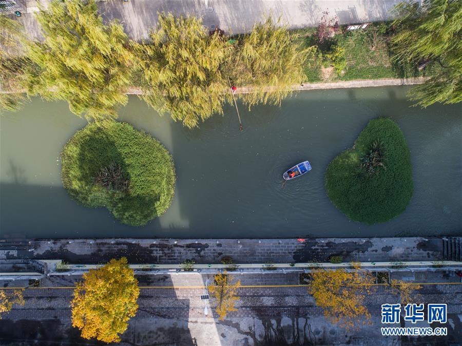 11月28日,長興縣虹星橋鎮(zhèn)港口村東港內(nèi),工作人員在打撈水面漂浮物(無人機拍攝)。東港全長1500米,環(huán)繞港口新村。2012年,新村建成后,港口村通過加固河岸、清理河道、種植浮草等方式對東港進行生態(tài)治理,并由該村黨總支書記孫根法擔任河長,定期開展巡查,引導村民自覺維護河道整潔。 新華社記者 徐昱 攝