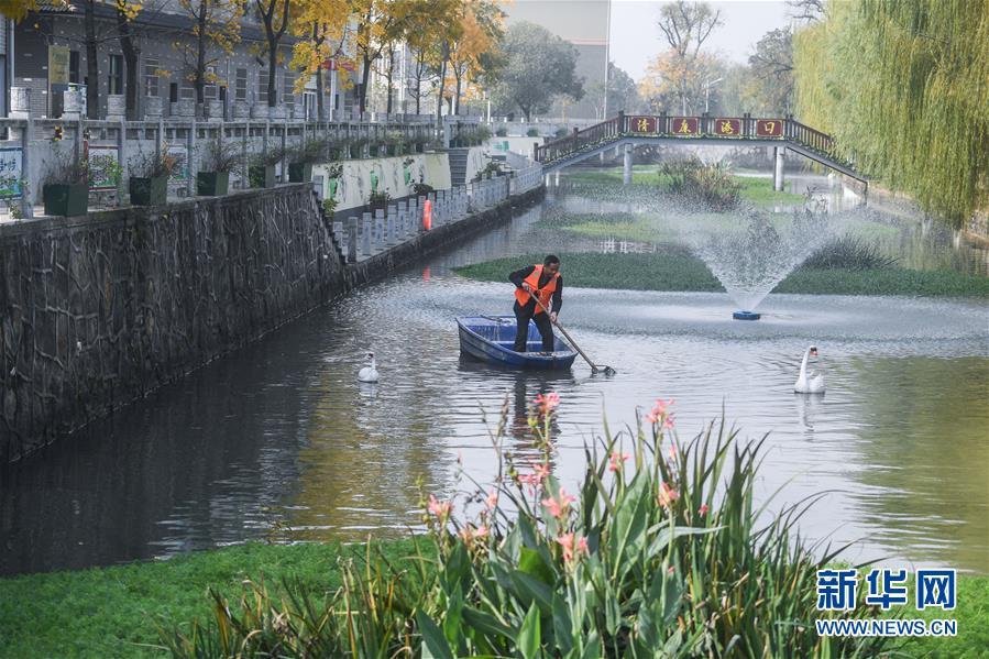 11月28日,長興縣虹星橋鎮(zhèn)港口村東港內(nèi),河長孫根法在打撈水面漂浮物。東港全長1500米,環(huán)繞港口新村。2012年,新村建成后,港口村通過加固河岸、清理河道、種植浮草等方式對東港進行生態(tài)治理,并由該村黨總支書記孫根法擔(dān)任河長,定期開展巡查,引導(dǎo)村民自覺維護河道整潔。 新華社記者 徐昱 攝