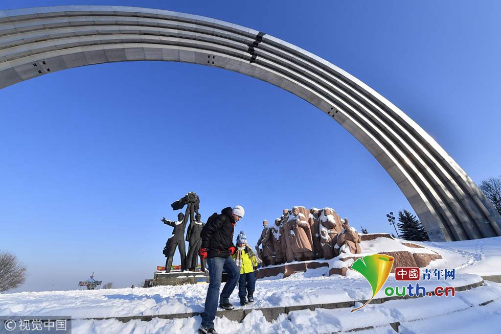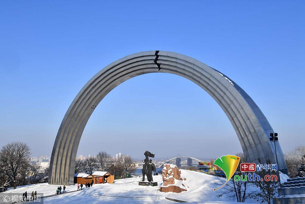 當?shù)貢r間2018年12月2日,烏克蘭基輔,蘇聯(lián)時期象征著烏克蘭和俄羅斯友誼拱形建筑被不知名藝術(shù)家添加了一道裂縫。俄烏黑海沖突后,緊張局勢升級,烏克蘭總統(tǒng)波羅申科于26日簽署戒嚴令。按照國家安全與國防委員會的決定,宣布批準烏克蘭全國實施戰(zhàn)時狀態(tài)。