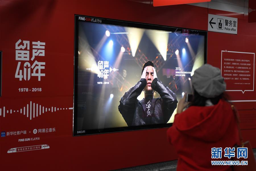12月3日,在北京地鐵4號線宣武門站,乘客經(jīng)過音樂主題影像展展出的音樂故事。 在慶祝改革開放40周年之際,當(dāng)日,新華社客戶端聯(lián)合網(wǎng)易云音樂在北京地鐵4號線宣武門站和杭州地鐵1號線定安路站,舉辦主題為“留聲40年:那些改變你我的故事”音樂主題影像展。同時,兩列滿載著“音樂故事”的留聲專列也開始在北京地鐵4號線、大興線及杭州地鐵1號線上開出。 音樂主題影像展通過中國照片檔案館珍貴的歷史照片,展示40年來中國音樂的發(fā)展歷程以及音樂給人們生活帶來的改變。 新華社記者 鞠煥宗 攝
