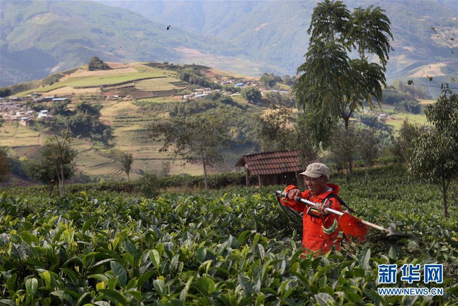 12月3日,云南省瀾滄拉祜族自治縣南嶺鄉(xiāng)黃回村村民在管理冬季茶園。茶葉種植是該村村民的主要經(jīng)濟收入來源。 新華社記者杜涓涓攝