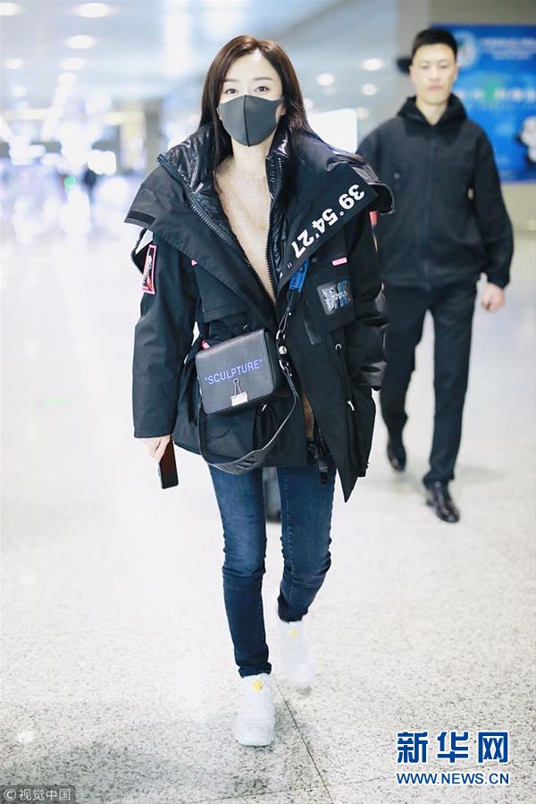 2018年12月3日,上海,秦嵐亮相機(jī)場(chǎng)。潮味棉服亮相機(jī)場(chǎng)變酷女孩,口罩遮面露甜笑心情靚。(圖片來源:視覺中國)
