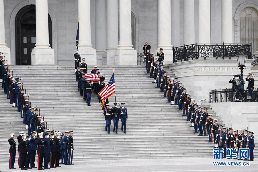 12月3日,在美國(guó)首都華盛頓,美國(guó)前總統(tǒng)喬治·赫伯特·沃克·布什(老布什)的靈柩抵達(dá)國(guó)會(huì)大廈。