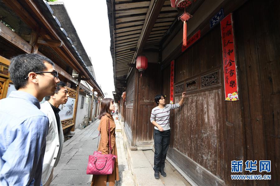 10月27日,琴江滿族村游客服務(wù)中心的鄭閩瓊(右一)向游客介紹三江口清朝水師旗營(yíng)古兵房建筑特色。福州市長(zhǎng)樂(lè)區(qū)琴江滿族村是福建省唯一的滿族聚居村,也是我國(guó)東南沿海保存較為完整的清代水師城堡。清雍正六年(1728年)時(shí),清政府在此建立“福州三江口水師旗營(yíng)”,鎮(zhèn)守閩江口,拱衛(wèi)省城,緝捕海盜,打擊走私。這里成為當(dāng)時(shí)全國(guó)四大水師旗營(yíng)之一,隨后逐漸成為一個(gè)居民小鎮(zhèn)。有近300年歷史的琴江村既有軍事歷史背景,又有民族文化特色,2010年成為“中國(guó)歷史文化名村”。新華社記者 林善傳 攝
