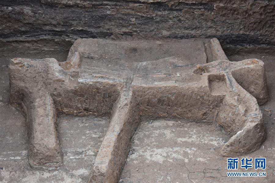 12月7日拍攝的吳山祭祀遺址內(nèi)發(fā)掘的車馬祭祀坑局部。 新華社記者都紅剛攝