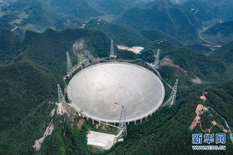 這是9月10日無人機拍攝的被譽為“中國天眼”的500米口徑球面射電望遠(yuǎn)鏡(FAST)。