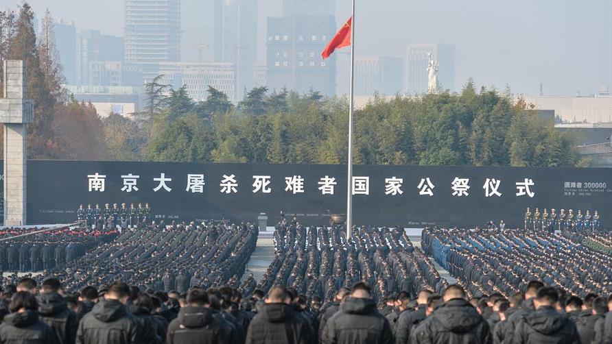 當(dāng)日是第五個南京大屠殺死難者國家公祭日,南京大屠殺死難者國家公祭儀式在侵華日軍南京大屠殺遇難同胞紀念館舉行。