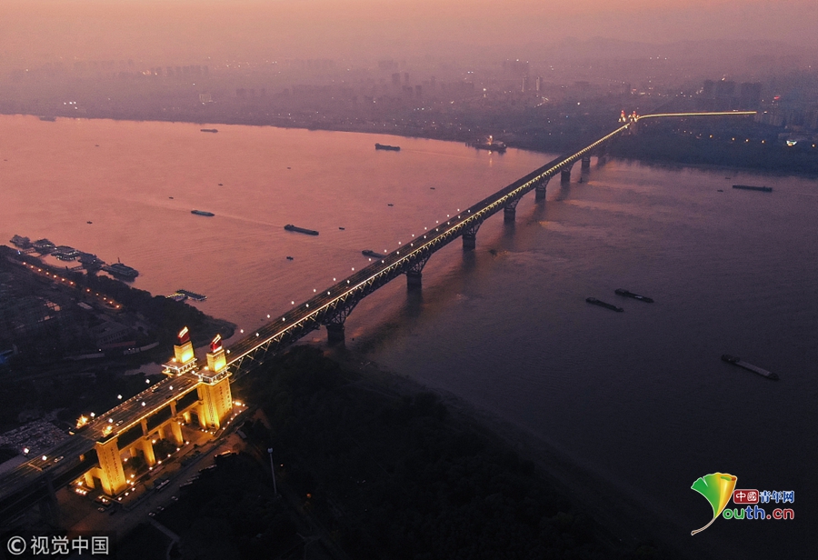 2018年12月13日,江蘇南京,“一橋飛架南北,天塹變通途。”作為我國(guó)第一座自行設(shè)計(jì)和建造的雙層鐵路、公路兩用橋,南京長(zhǎng)江大橋在我國(guó)橋梁史上的重要地位不言而喻。從1968年建成后的48年間,它就如同一條巨龍,始終在長(zhǎng)江上默默守護(hù)著人來(lái)車往。南京長(zhǎng)江大橋上層是公路橋,下層為雙軌復(fù)線鐵路橋,連接津浦鐵路與滬寧鐵路干線,是我國(guó)南北交通要津和命脈。近年來(lái),由于南京長(zhǎng)江大橋公路橋的實(shí)際通行荷載遠(yuǎn)超原先設(shè)計(jì)標(biāo)準(zhǔn),不僅橋面上擁堵?,F(xiàn),橋梁本身的種種“病害”也日益加深。圖為2018年12月13日,夜幕降臨,南京長(zhǎng)江大橋歸位后的玉蘭花燈重新點(diǎn)亮。大橋玉蘭花燈柱共有299根,每根燈柱上有5盞玉蘭花燈,1大4小,一共1495盞。方東旭/視覺(jué)中國(guó)