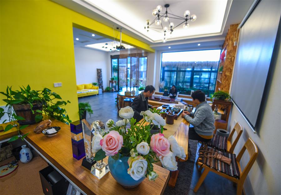 12月15日,工作人員在朱家尖烏石塘“漁夫客?!泵袼蘅头績?nèi)忙碌。 新華社記者 徐昱 攝