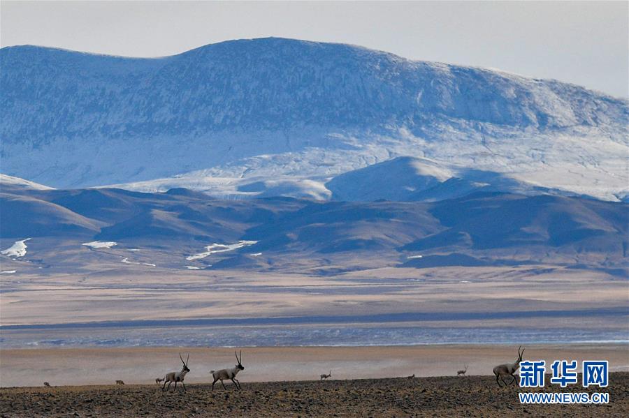 西藏羌塘國(guó)家級(jí)自然保護(hù)區(qū)的藏羚羊(12月14日攝)。