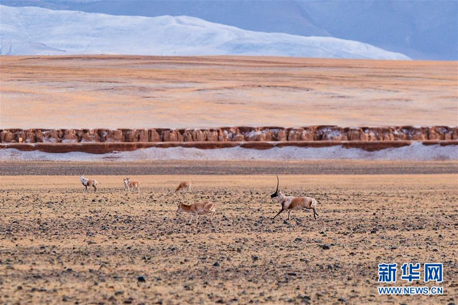 西藏羌塘國(guó)家級(jí)自然保護(hù)區(qū)的藏羚羊(12月14日攝)。
