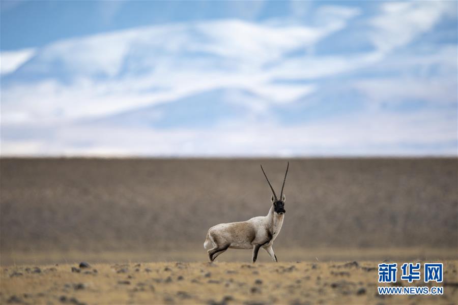 一只藏羚羊在西藏羌塘國(guó)家級(jí)自然保護(hù)區(qū)的原野上活動(dòng)(12月14日攝)。  新華社記者 張汝鋒 攝