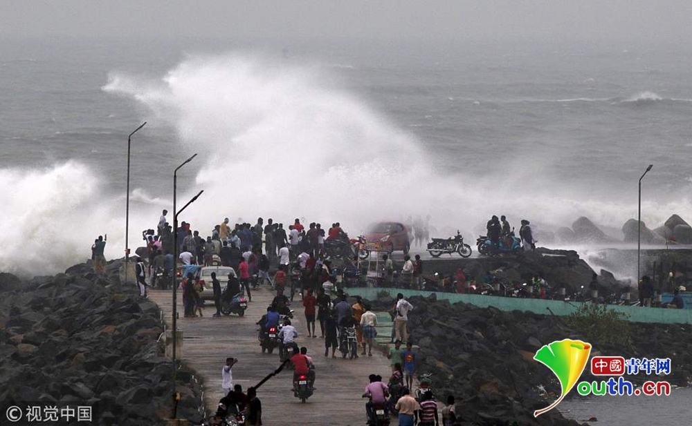 當地時間2018年12月16日,印度欽奈,颶風“佩太”正向印度東海岸逼近,引發(fā)狂風巨浪。