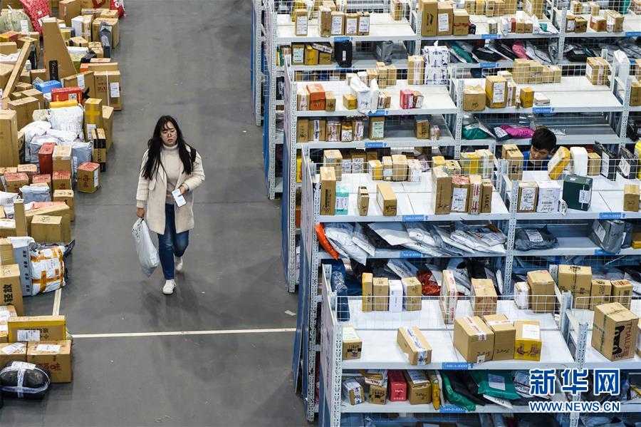 南京航空航天大學(xué)學(xué)生在校園臨時快遞取件點領(lǐng)取快遞(11月13日攝)。 新華社記者 李博 攝