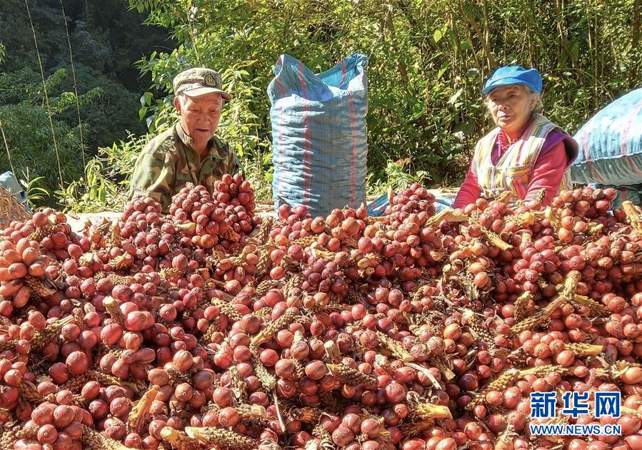 獨(dú)龍江鄉(xiāng)馬庫村村民在整理收獲的草果,準(zhǔn)備賣到外地市場(2018年11月10日攝)。 新華社發(fā)(楊時平 攝)