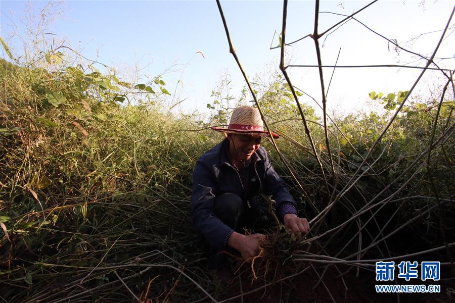 舒港發(fā)查看自家種植的西洋參(10月27日攝)。