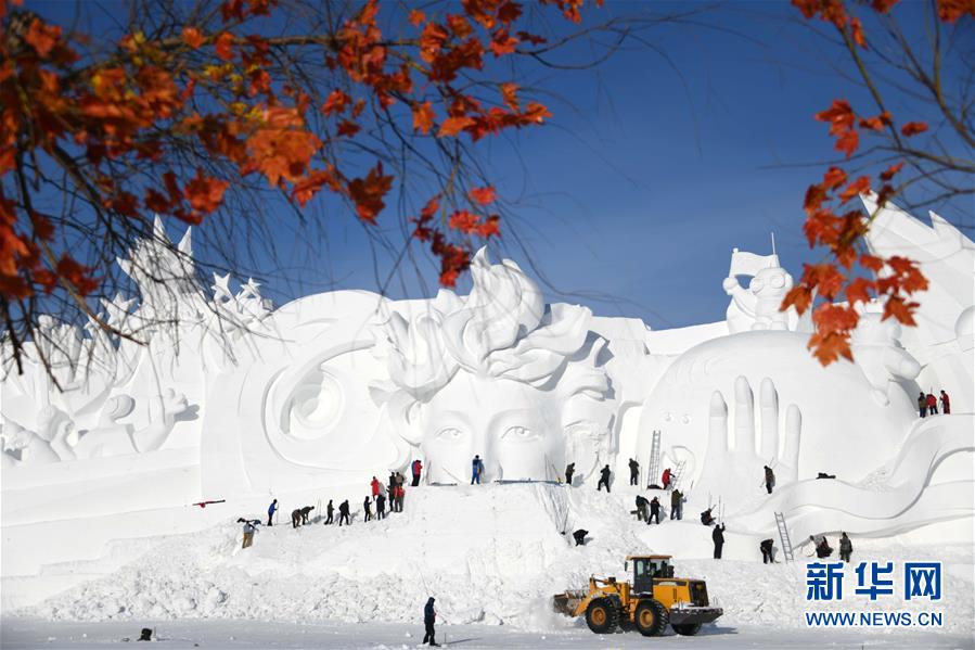 2018年12月13日,黑龍江省哈爾濱市,國內(nèi)最大的雪雕盛會太陽島雪博會正在緊鑼密鼓建設(shè)中。