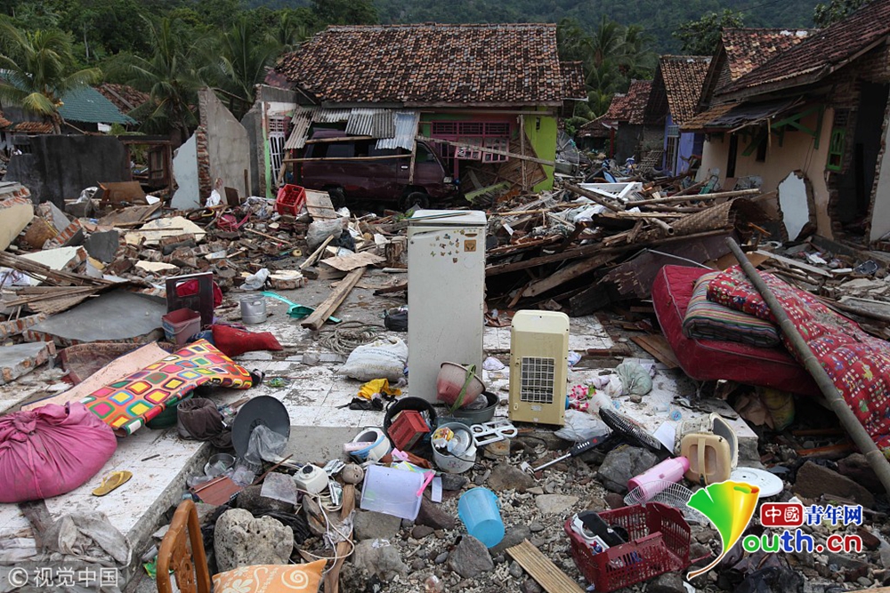 印尼海嘯現(xiàn)場滿目瘡痍!