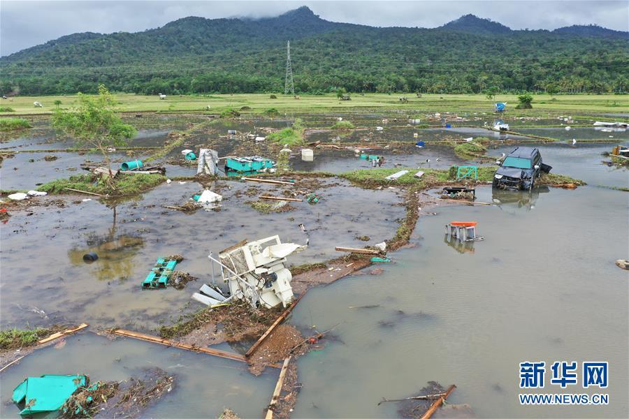 這是12月24日拍攝的印尼萬丹省一處被海嘯損毀的農田。 印度尼西亞抗災署發(fā)言人24日說,印尼西部巽他海峽海嘯死亡人數(shù)已經(jīng)上升至373人。 新華社記者 杜宇 攝
