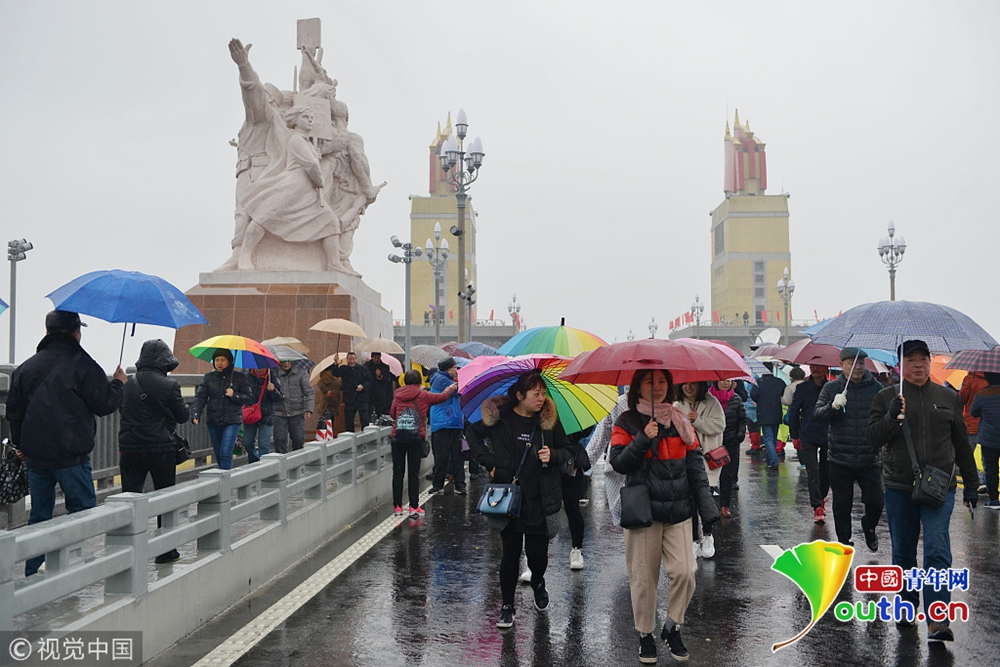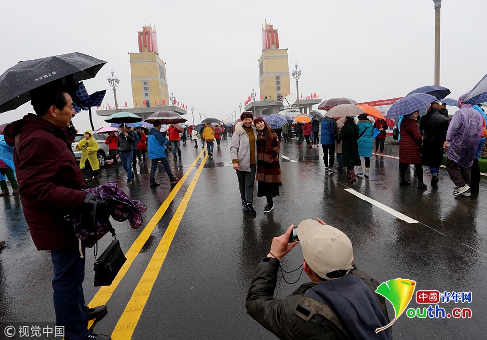 2018年12月26日,南京。南京長(zhǎng)江大橋維修改造工程竣工通車在即,12月26日至28日三天向公眾開放,12月26日,“市民開放日”首日,早晨九時(shí)許,雖然下著雨,但記者在南京長(zhǎng)江大橋入口和橋上看到,如織的市民打著傘來(lái)到大橋,整個(gè)橋上全是撐傘觀看的市民,足有萬(wàn)人,十分壯觀。
