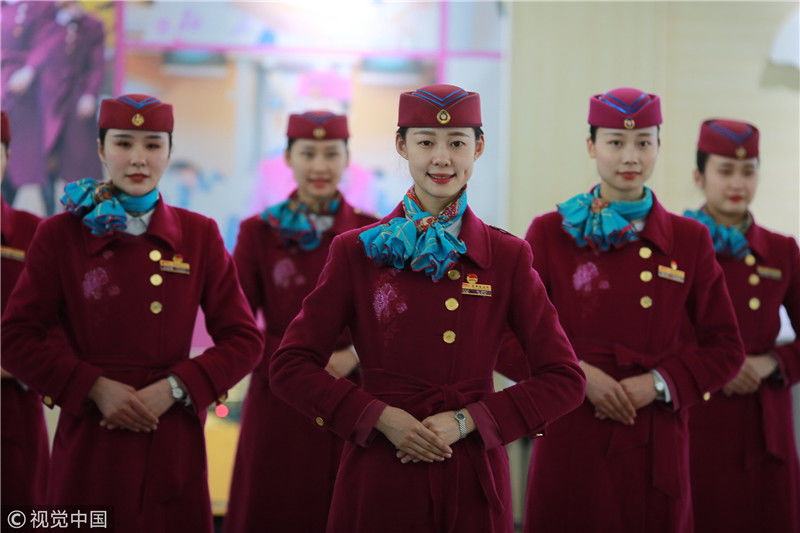 2018年12月27日,四川成都,為備戰(zhàn)即將開通的成雅鐵路,中國鐵路成都局集團(tuán)有限公司成都客運段動車二隊對成雅動車的乘務(wù)人員進(jìn)行理論、形體、服務(wù)禮儀等內(nèi)容的培訓(xùn)。