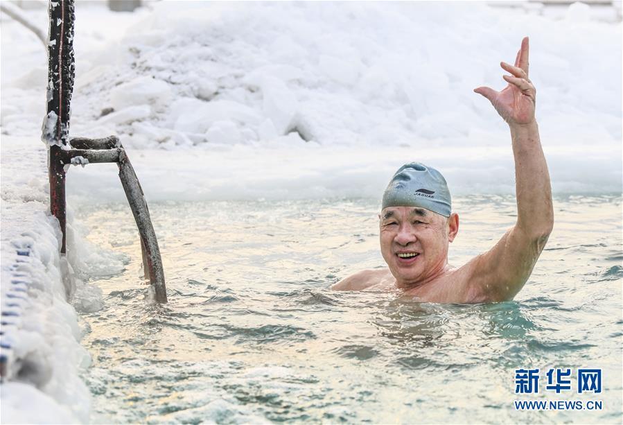 當(dāng)日,新疆烏魯木齊戶外氣溫接近零下20攝氏度,許多冬泳愛好者不懼嚴(yán)寒,來到烏魯木齊紅山游泳中心戶外泳池進行冬泳運動,鍛煉身體,磨練意志。