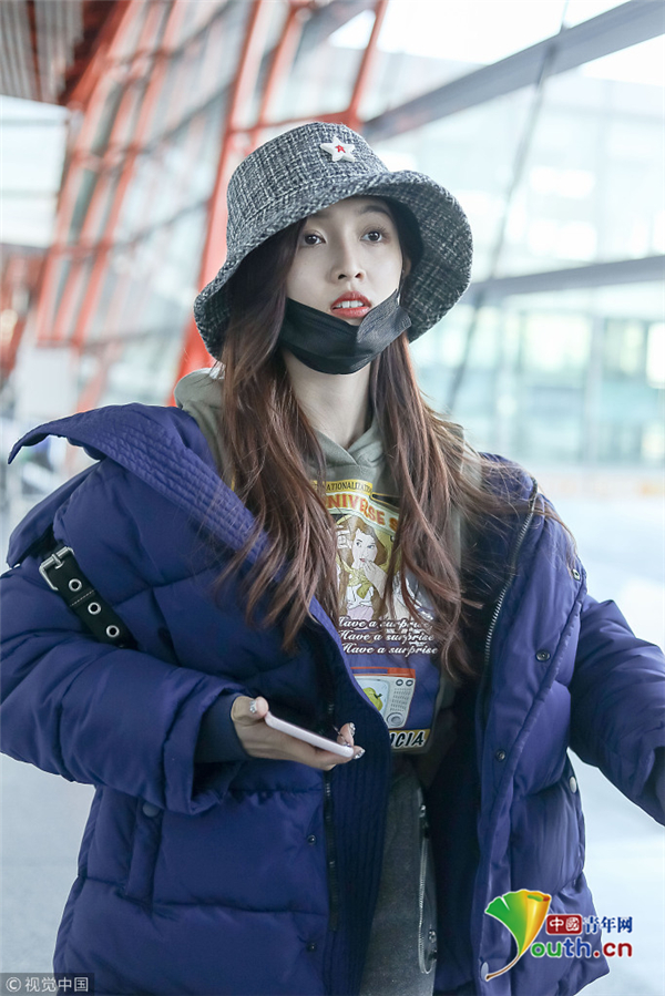 1月1日,北京,吳宣儀現(xiàn)身機(jī)場。外帶著漁夫帽的她嘟嘴顯可愛,裹著厚重羽絨服認(rèn)真過冬超保暖。