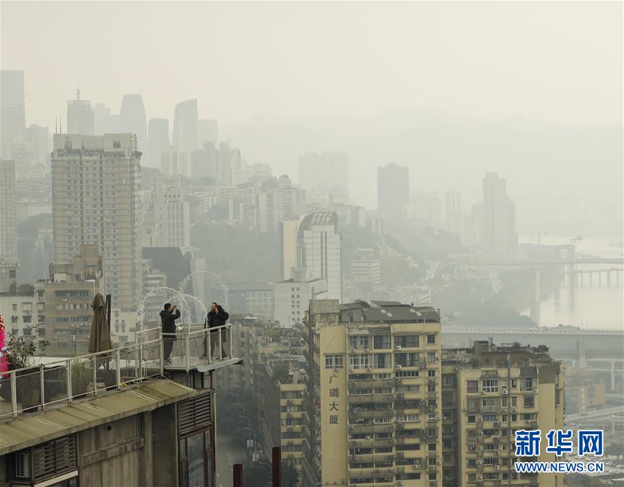 1月1日,游客在重慶鵝嶺二廠文藝街區(qū)內一棟老樓的屋頂花園游覽。