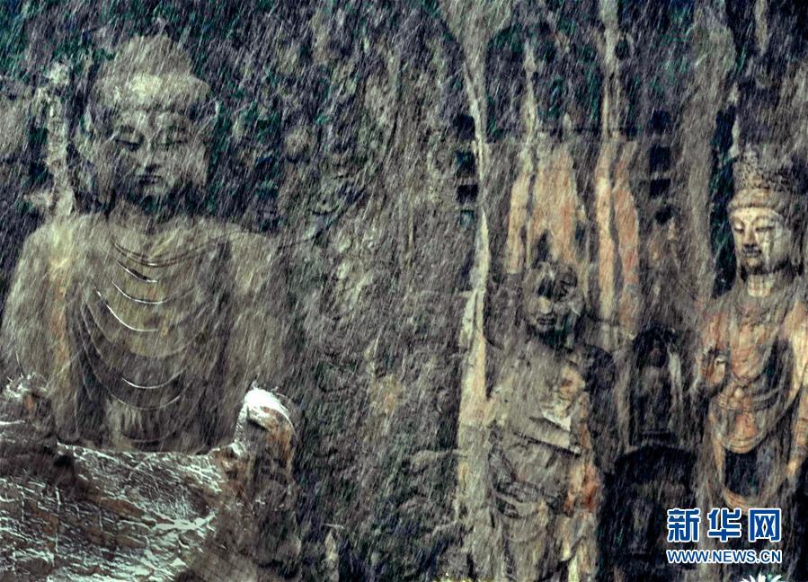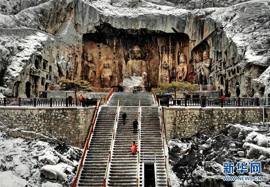 當(dāng)日,雪后的河南洛陽(yáng)龍門石窟景區(qū)銀裝素裹,一幅天然的水墨畫卷徐徐展開(kāi)。