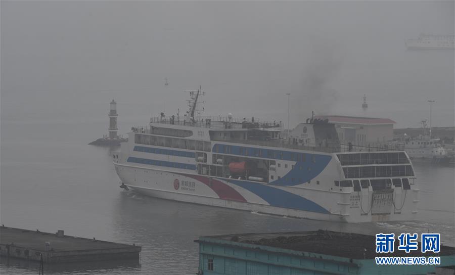 1月13日,一艘客滾船從海口秀英港駛出。  新華社記者楊冠宇攝