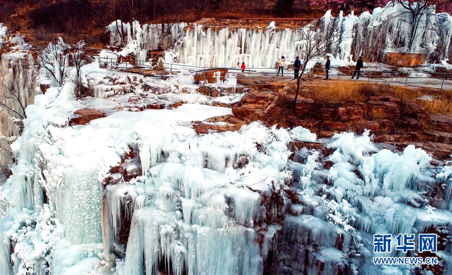 1月9日,游客在云臺(tái)山景區(qū)觀賞冰瀑景觀。 近日,受降溫影響,位于河南省焦作市的云臺(tái)山景區(qū)出現(xiàn)冰瀑景觀,奇特壯美。 新華社記者 李嘉南 攝