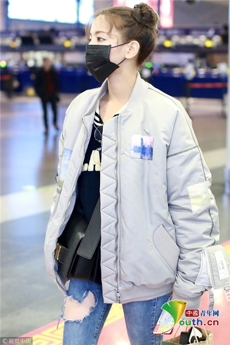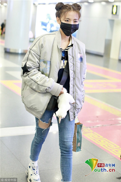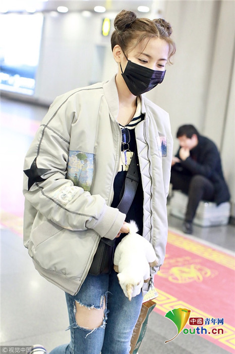 2019年1月14日,北京,楊超越現(xiàn)身機(jī)場。她扎哪吒頭活力十足,甩玩偶淘氣回眸,穿破洞褲露美腿,披面包服似自帶鼓風(fēng)機(jī)。