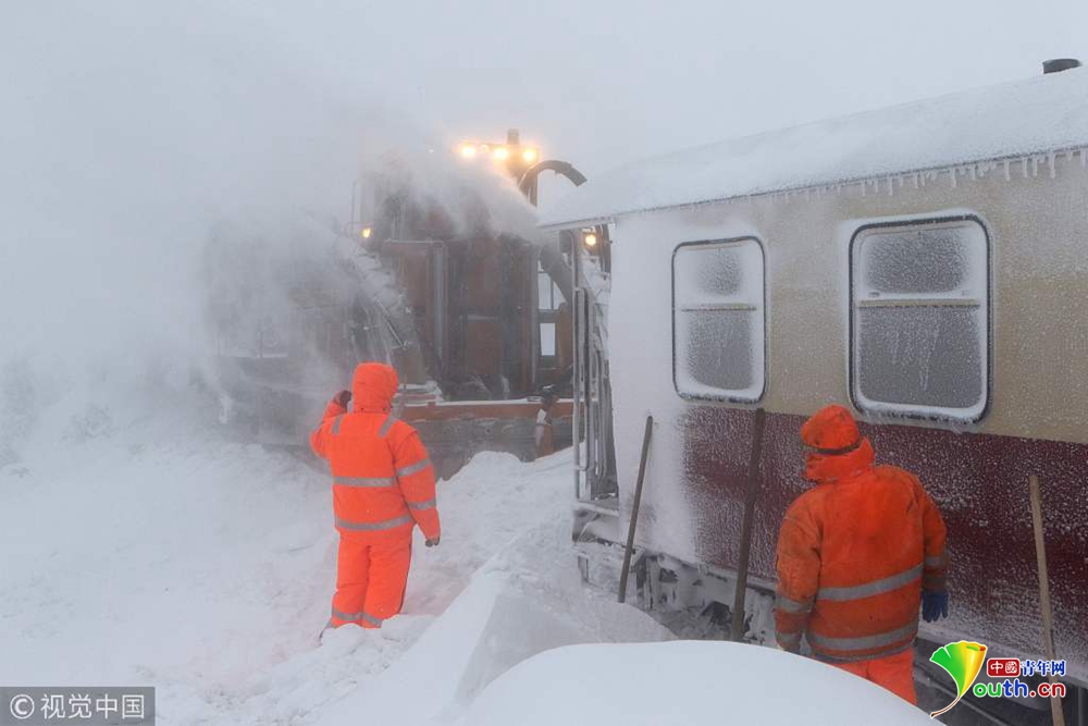 奧地利暴風(fēng)雪持續(xù) 公交車站被積雪掩埋
