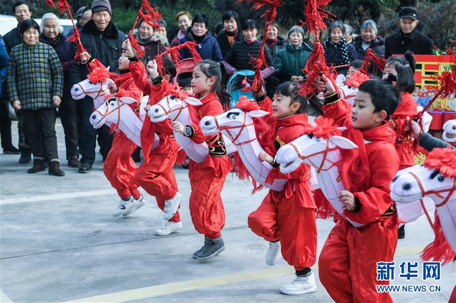 1月16日,孩子們?yōu)樾绿链宕迕癖硌輦鹘y(tǒng)非遺項目——下箬馬燈。下箬馬燈是發(fā)源于長興縣的民間舞蹈,距今已有1000多年歷史。 臨近春節(jié),浙江省長興縣開發(fā)區(qū)中心幼兒園的老師和孩子們來到長興縣太湖街道下屬的新塘村,為村民表演文藝節(jié)目,用喜慶的傳統(tǒng)舞蹈營造節(jié)日氣氛。另外孩子們還用紙盒、瓶子、彩色包裝紙等廢舊物品制作了環(huán)?;簦徒o村民,倡導低碳環(huán)保的節(jié)日新風。 新華社記者 徐昱 攝