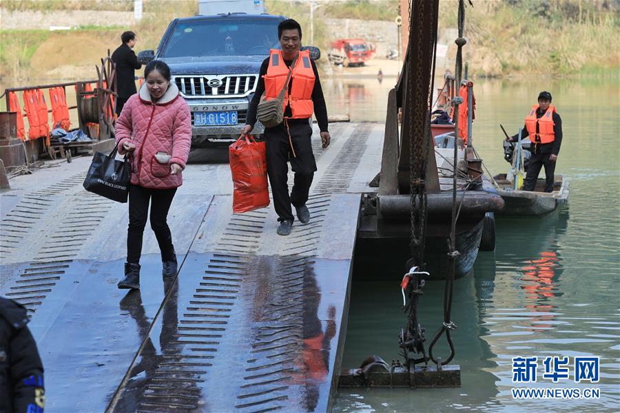 1月22日,賴福昌(左)幫助一名乘坐渡輪的孕婦拎包下船。 新華社記者 歐東衢 攝