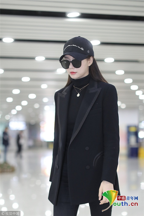 1月22日,北京,沈夢辰現身機場,全黑look又颯又美,戴著黑超遮面從昔日甜妹秒變酷girl!