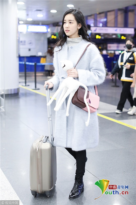 2019年1月27日,北京,陳都靈現(xiàn)身機場。手里拿著可愛白色公仔的她深夜現(xiàn)身機場,皮膚狀態(tài)仍非常好,羨煞旁人。