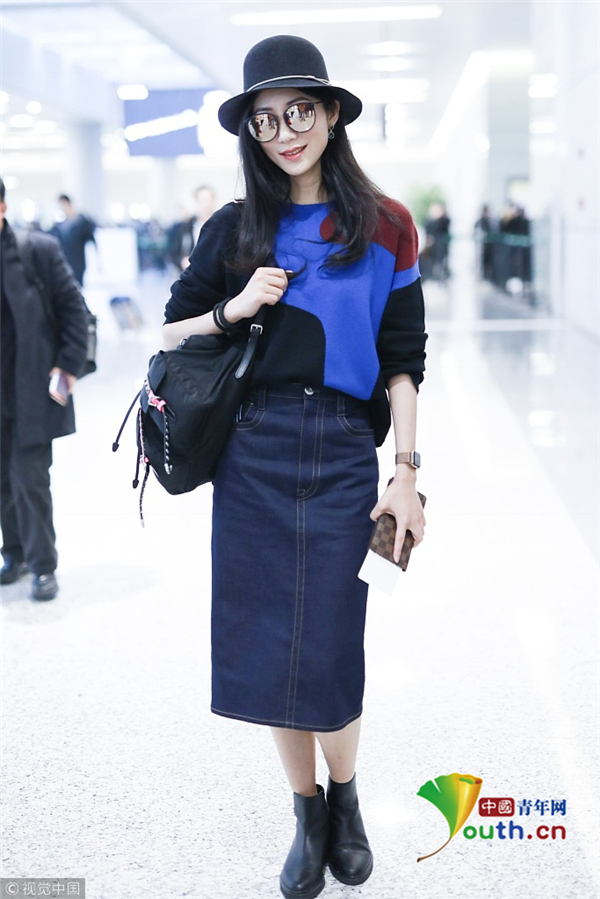 3月4日,上海,韓雪現(xiàn)身機場。她戴著圓帽和鐳射墨鏡,身穿拼色毛衣,盡顯優(yōu)雅名媛范。