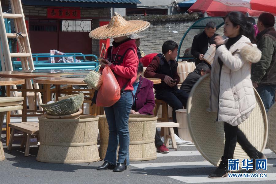 3月12日,人們在福建武夷山“柴頭會”上采購傳統(tǒng)竹制品。