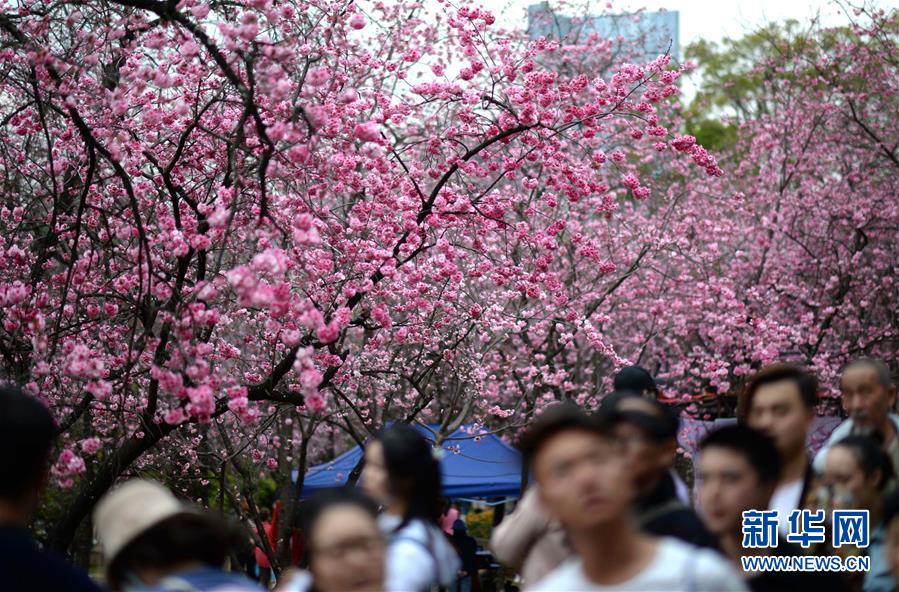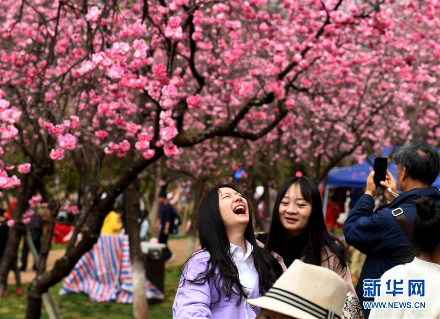 游人在昆明圓通山公園觀賞盛開的櫻花(3月16日攝)。近日,云南省昆明市迎來櫻花盛開的時節(jié)。昆明圓通山公園的數千株櫻花燦爛綻放,吸引了市民和游客前來觀花賞景。新華社記者秦晴攝